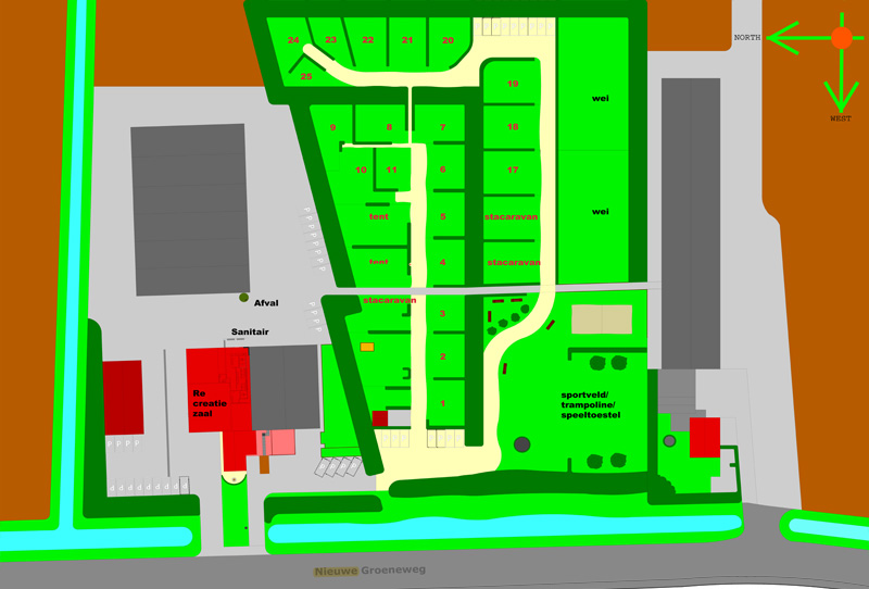 Houdt het groen op de camping netjes! Alleen paden gebruiken en niet door de heggen heen steken.