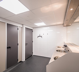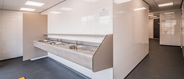 De camping beschikt over modern sanitair (2018) dames en heren gescheiden en voor jonge gezinnen een familiedouche. Voor de afwas zijn er wasbakken bij de ingang van het gebouw. Er zijn geen muntautomaten. In deze ruimte staan ook de wasmachine en droger, d.m.v. een lijst kunt u uw beurten reserveren om die nadien te verrekenen.